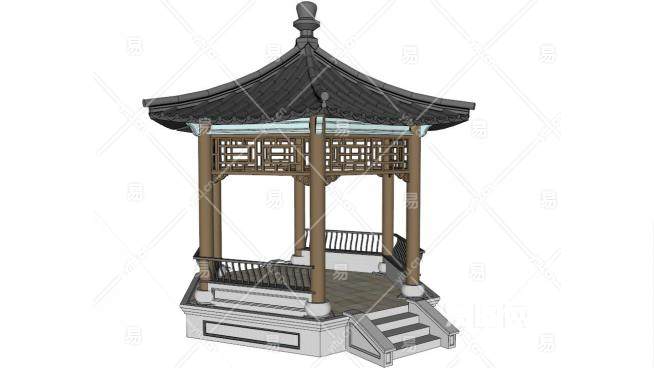 六角景观亭su模型下载_sketchup草图大师SKP模型
