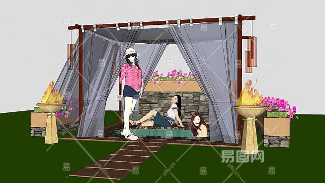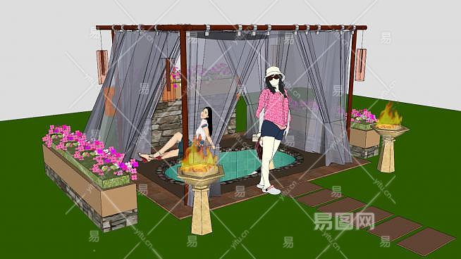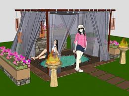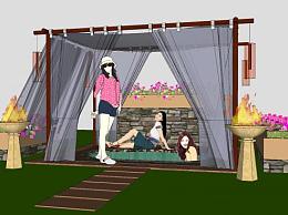 帐篷亭子户外温泉SU模型下载_sketchup草图大师SKP模型