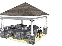现代户外厨台烧烤亭SU模型下载_sketchup草图大师SKP模型
