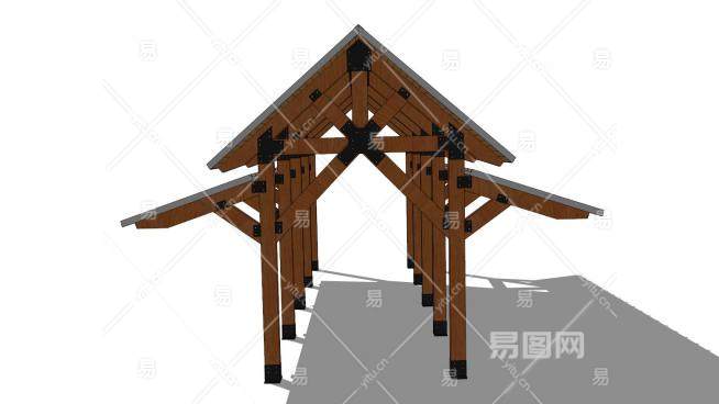 现代中式木制凉亭走道SU模型下载_sketchup草图大师SKP模型