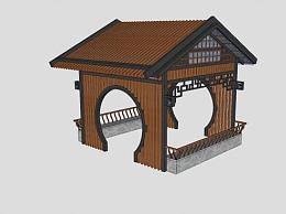 新中式亭廊木亭子建筑SU模型下载_sketchup草图大师SKP模型