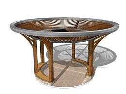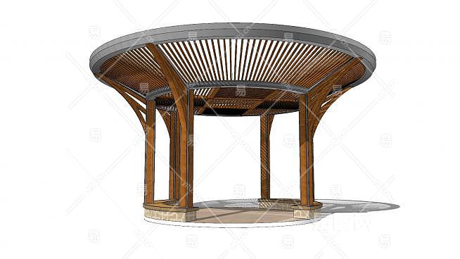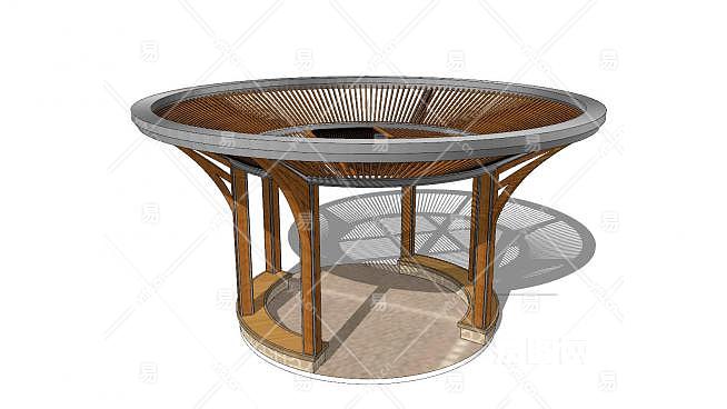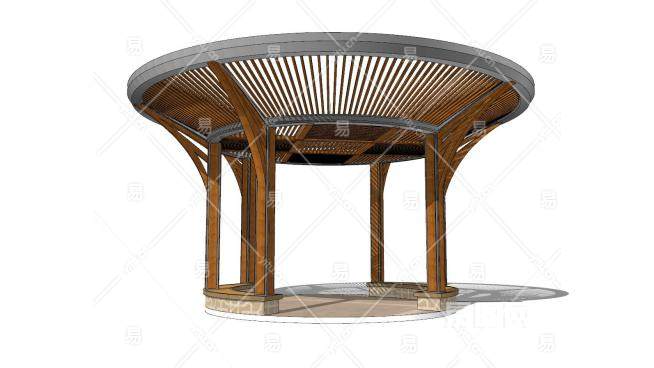中式圆顶木亭子SU模型下载_sketchup草图大师SKP模型