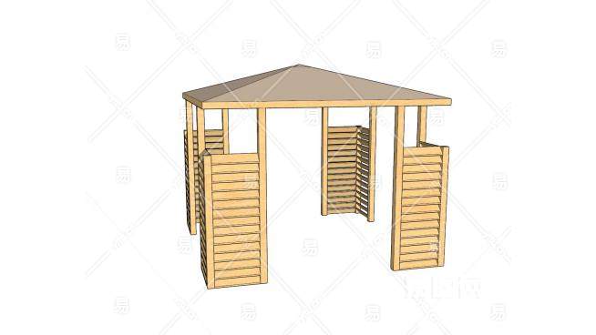 百叶帘柱四角亭SU模型下载_sketchup草图大师SKP模型