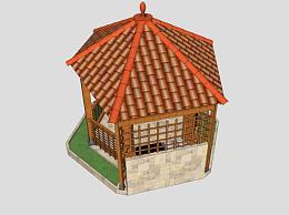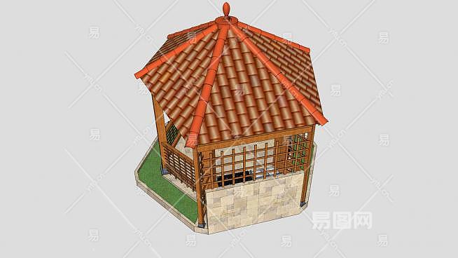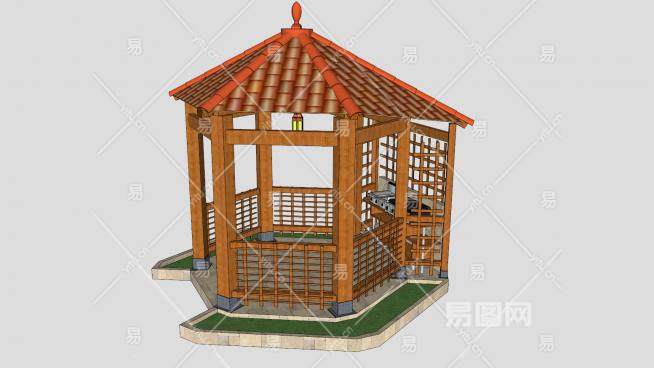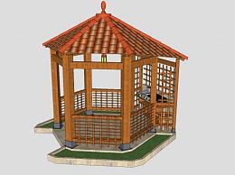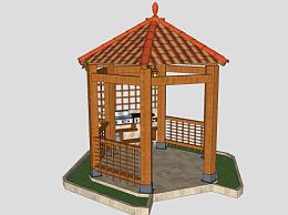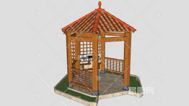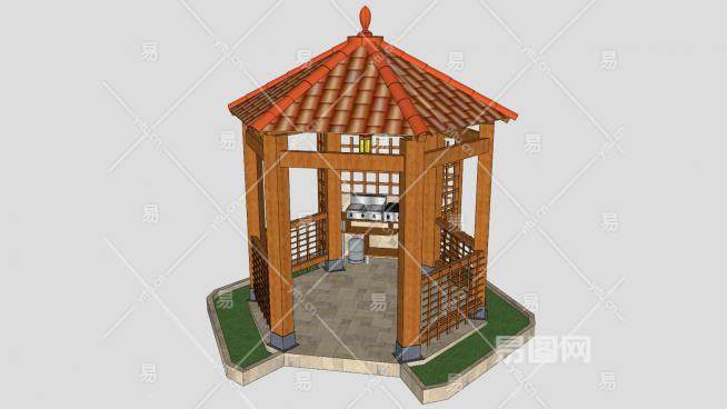 中式户外烧烤花园木亭SU模型下载_sketchup草图大师SKP模型