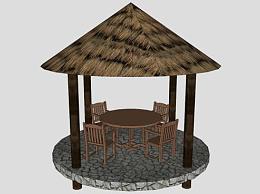 圆顶茅草亭子座椅SU模型下载_sketchup草图大师SKP模型