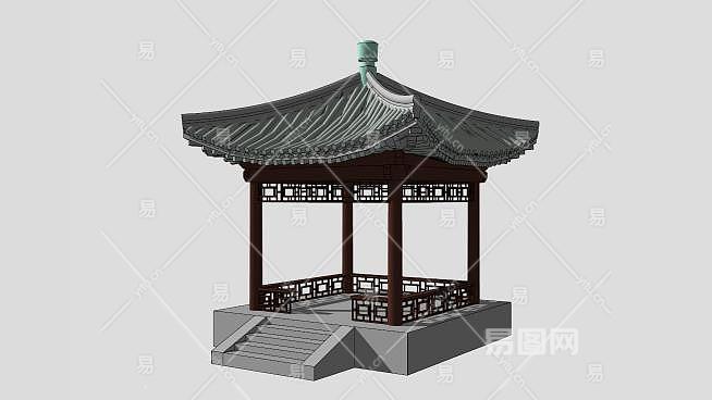 中式青瓦凉亭四角亭SU模型下载_sketchup草图大师SKP模型
