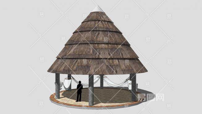农家乐茅草亭SU模型下载_sketchup草图大师SKP模型