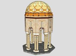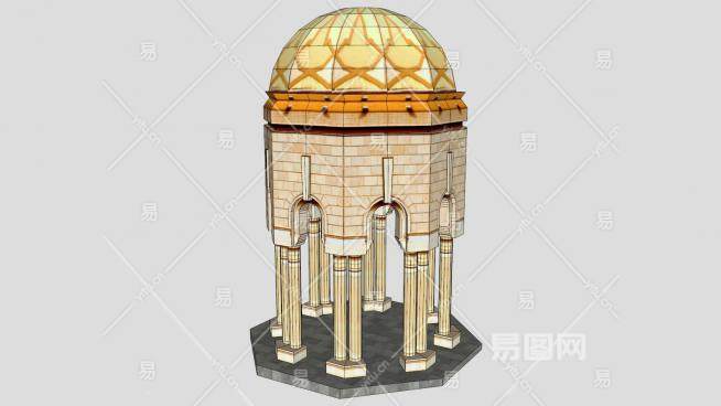 复古圆顶石柱凉亭SU模型下载_sketchup草图大师SKP模型