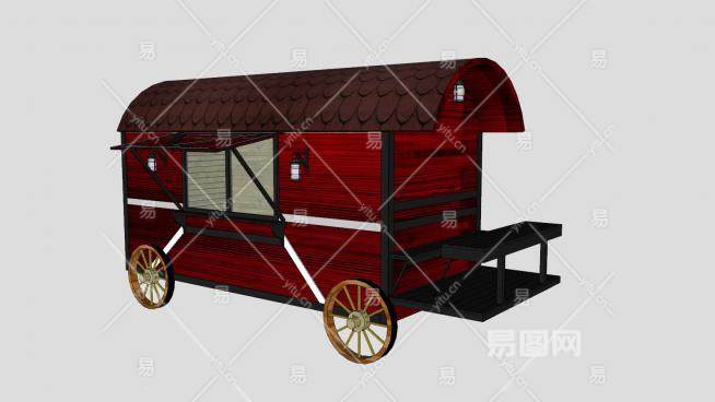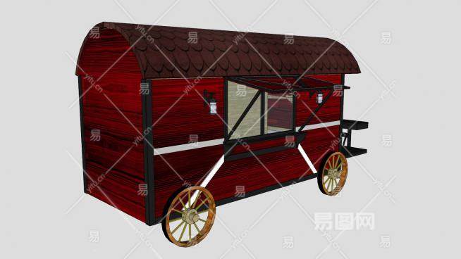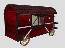商业街马车贩卖亭SU模型下载_sketchup草图大师SKP模型