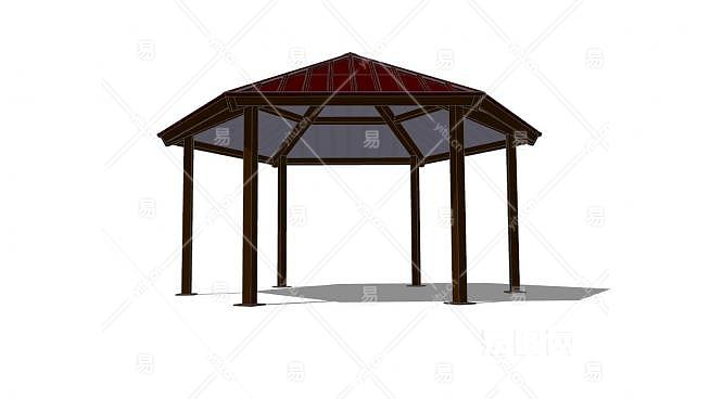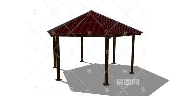 现代六角庇荫亭SU模型下载_sketchup草图大师SKP模型
