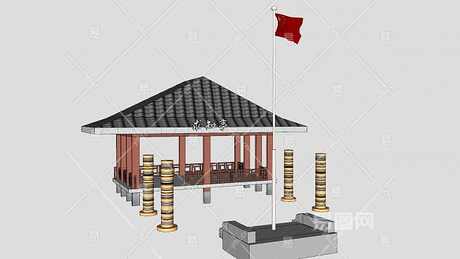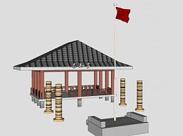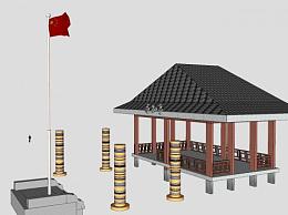 求知亭景观柱和升旗台SU模型下载_sketchup草图大师SKP模型