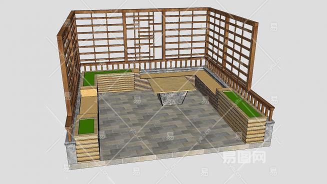 木栅凉亭SU模型下载_sketchup草图大师SKP模型