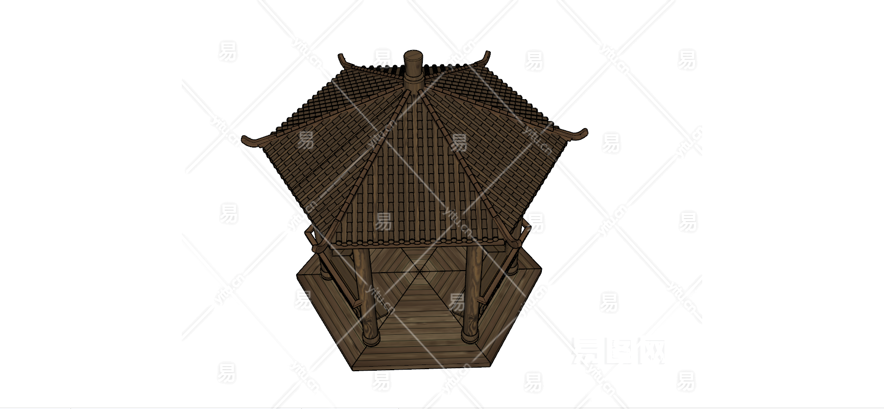 • 现代中式碳化木竹节瓦凉亭SU模型下载