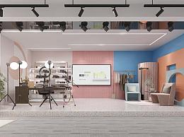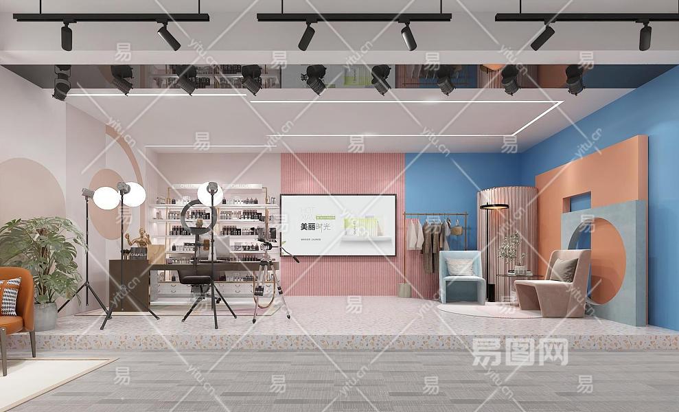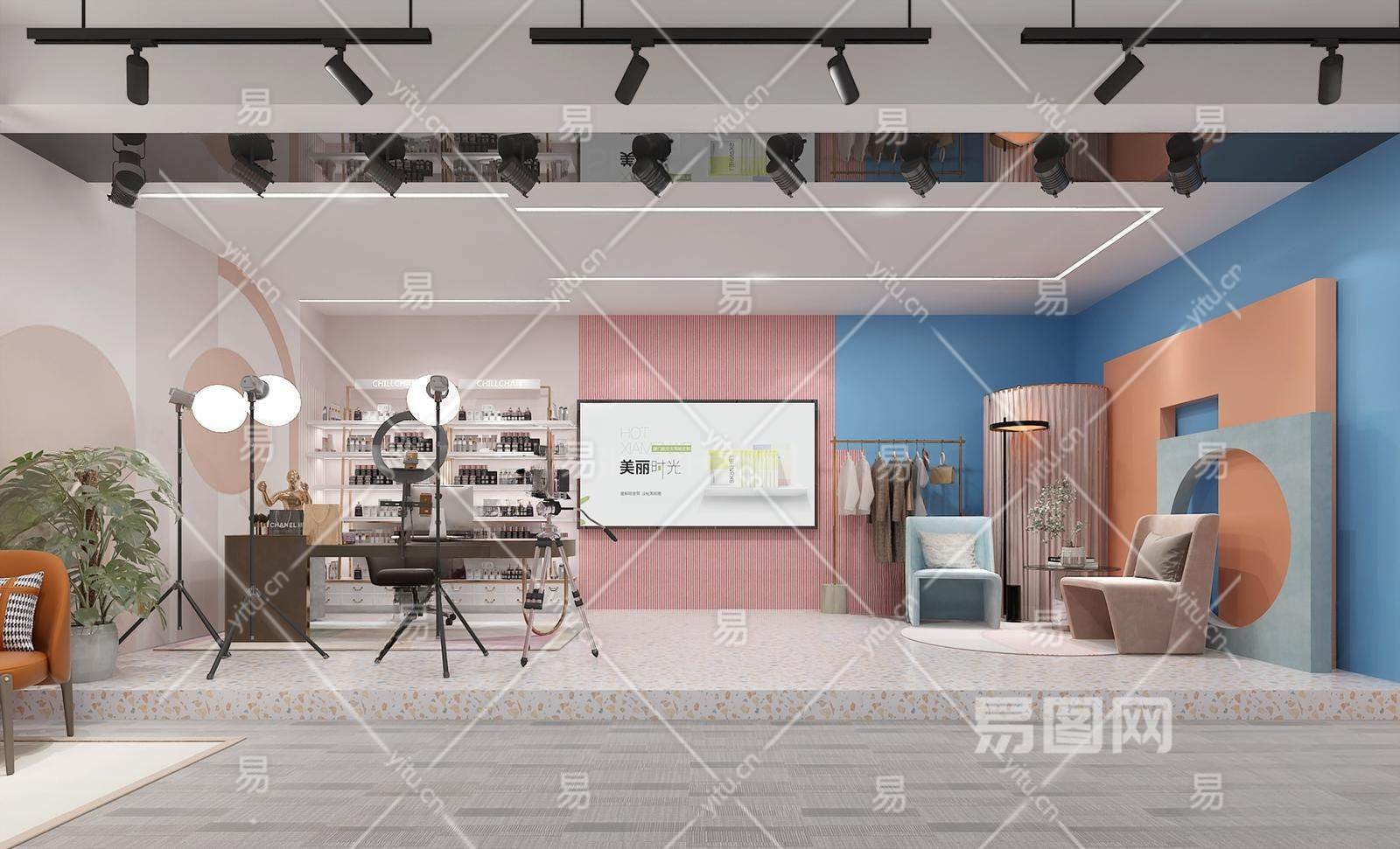 现代直播间 沙发茶几组合 直播台 产品柜 摄像机