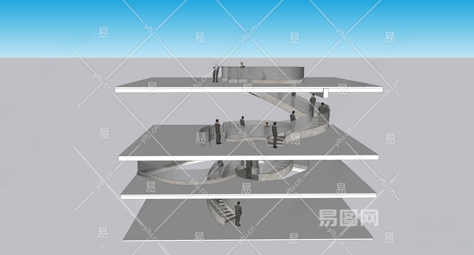 现代旋转楼梯间SU模型下载