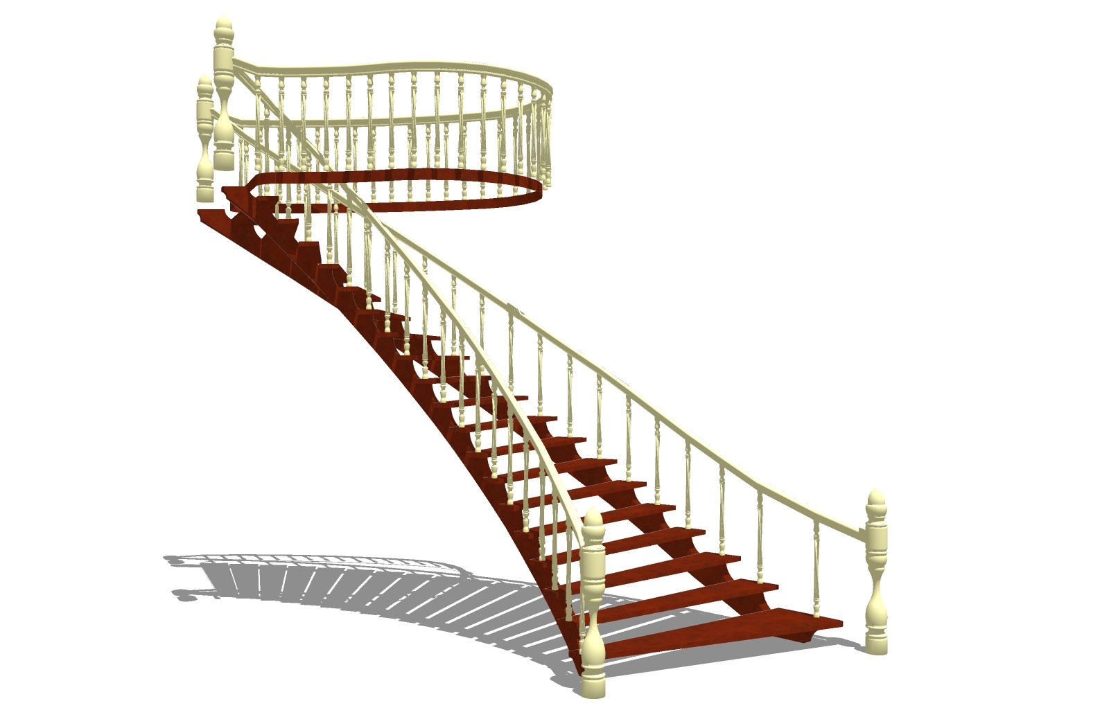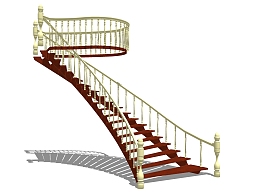 现代实木弧形楼梯草图大师模型,实木弧形楼梯sketchup模型免费下载