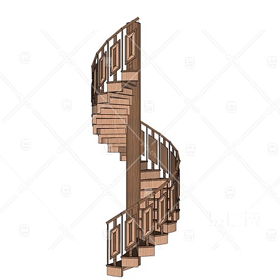 现代实木旋转楼梯su模型
