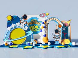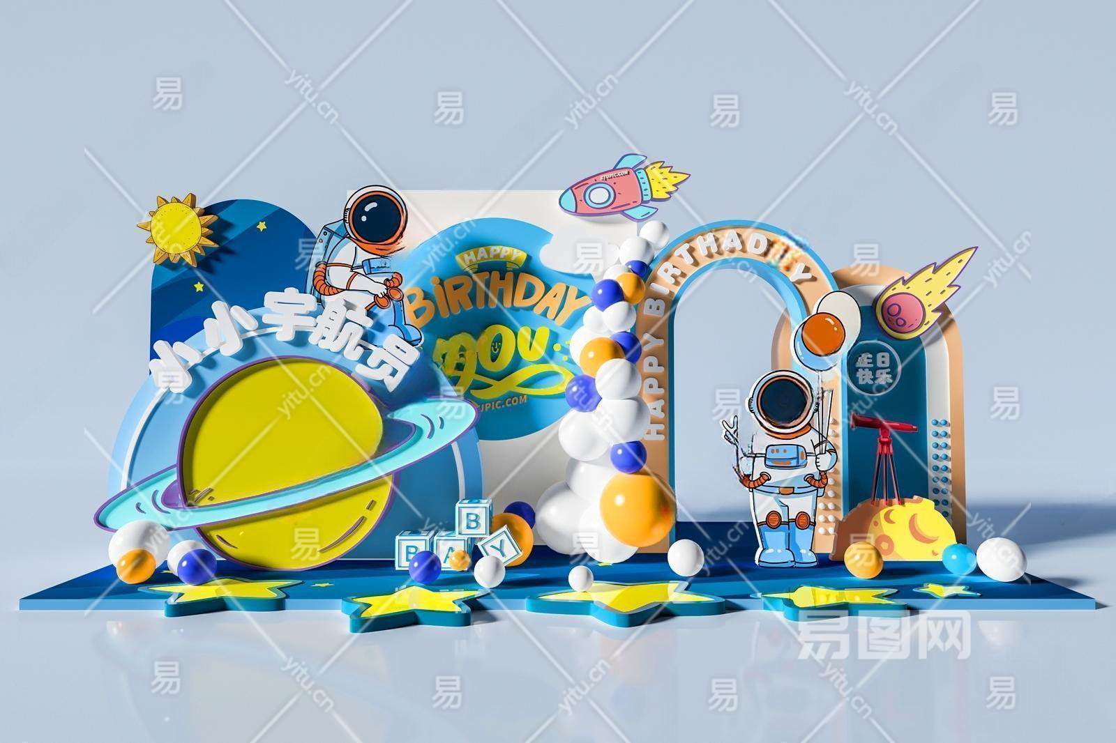 现代创意快乐星球太空宇航员美陈 生日布置美陈 网红打卡拍照区