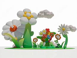 现代春夏季商业美陈 商场创意 卡通花朵美陈