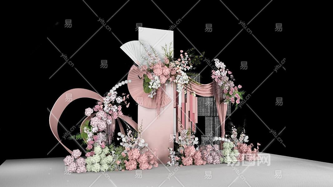 现代白粉色布幔婚礼美陈