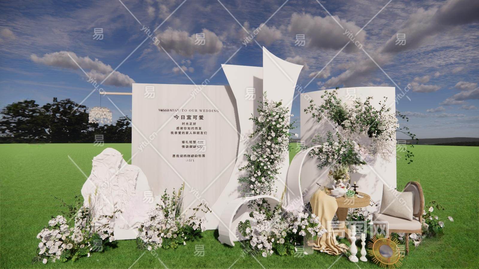 现代白绿户外婚礼美陈