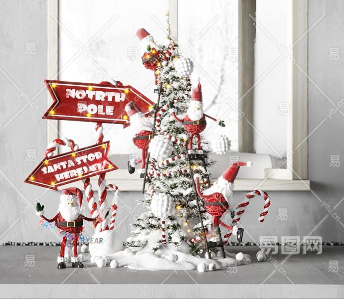 现代圣诞节美陈 装饰品摆件 圣诞节饰品 圣诞树 圣诞老人玩偶