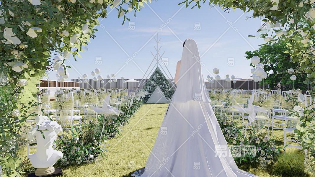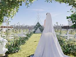 现代户外婚礼美陈 草坪教堂式婚礼场地设计