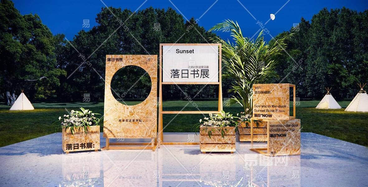 现代网红露营美陈 网红打卡书店主题外摆美陈 落日灯牌