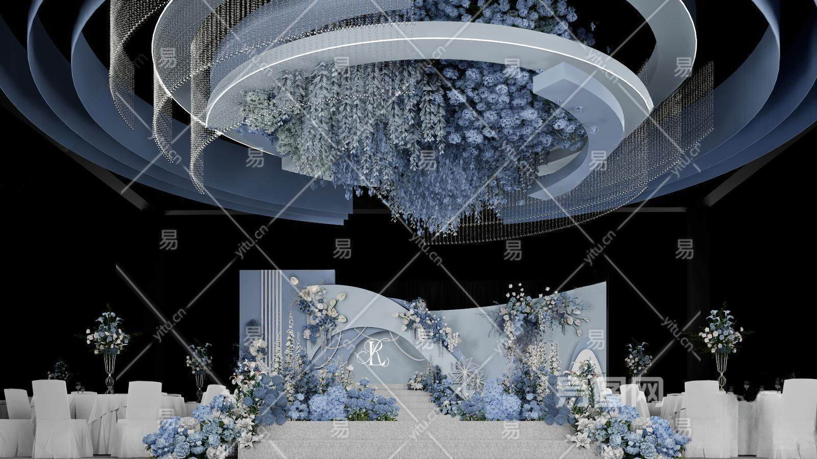 现代美陈 高级雾霾蓝吊顶婚礼场景