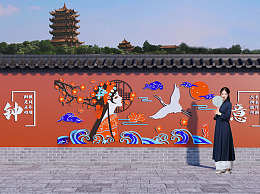 新中式国风网红打卡墙 国潮网红打卡墙 文化景墙 直线 围墙