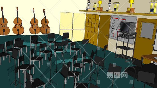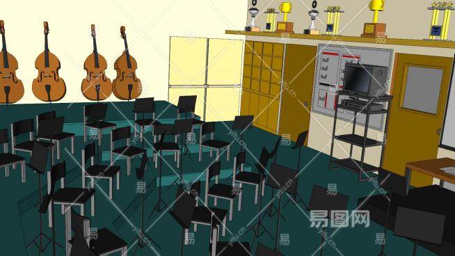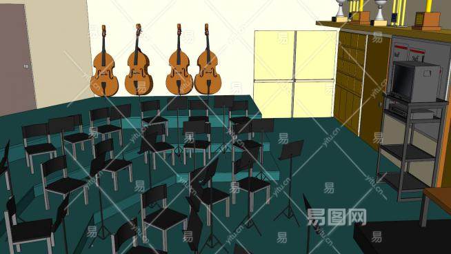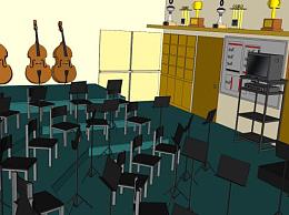 音乐乐队房间SU模型下载_sketchup草图大师SKP模型
