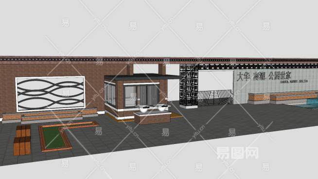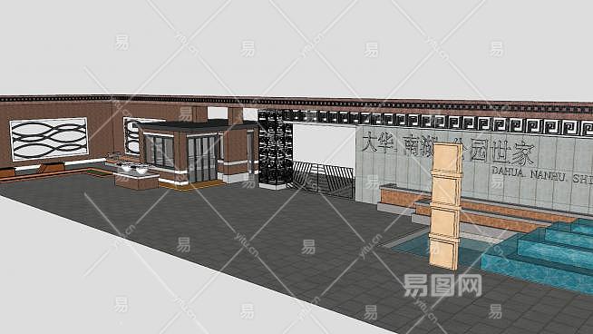 现代大华南湖小区大门SU模型下载_sketchup草图大师SKP模型