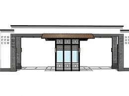 中式岗亭小区大门入口SU模型下载_sketchup草图大师SKP模型