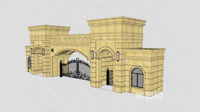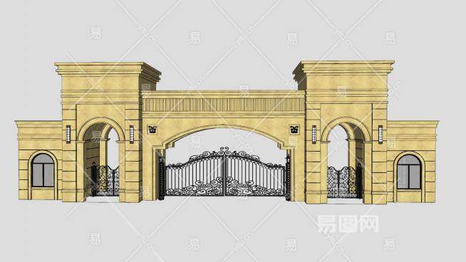 欧式园林铁艺大门SU模型下载_sketchup草图大师SKP模型