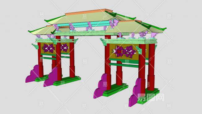 现代仿古牌坊SU模型下载_sketchup草图大师SKP模型