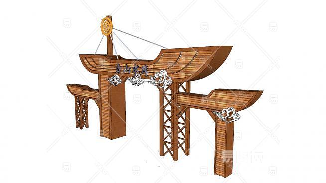 新中式实木水库门头SU模型下载_sketchup草图大师SKP模型