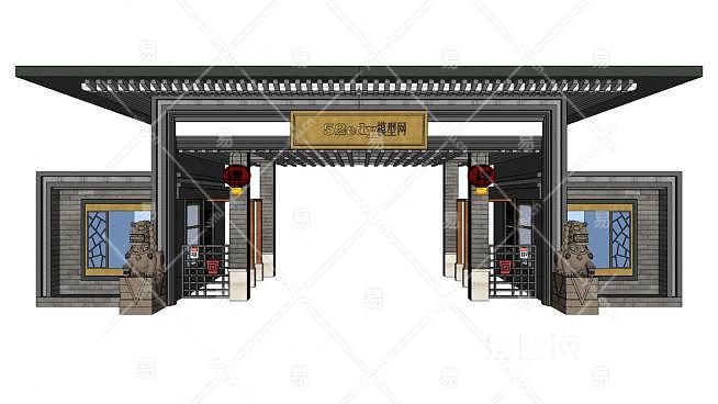 中式入口大门设计su模型下载_sketchup草图大师SKP模型