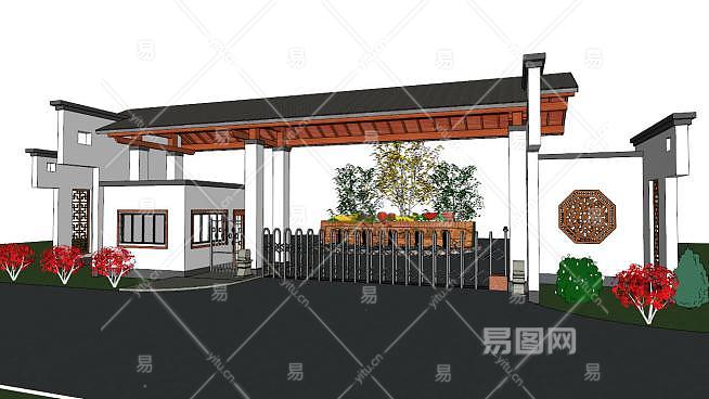 园林景观大门SU模型下载_sketchup草图大师SKP模型