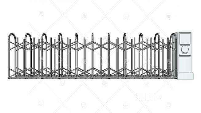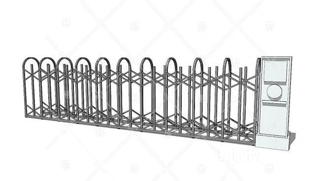 电动伸缩门挡杆闸门SU模型下载_sketchup草图大师SKP模型