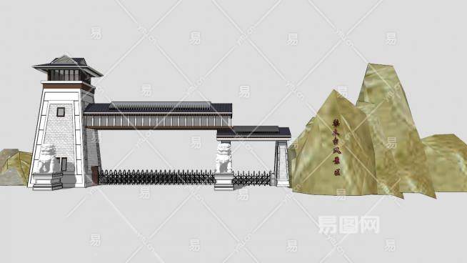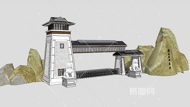 古代旅游景区大门景观入口SU模型下载_sketchup草图大师SKP模型