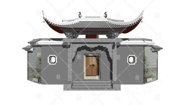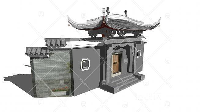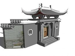 中式院门大门围墙SU模型下载_sketchup草图大师SKP模型