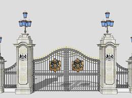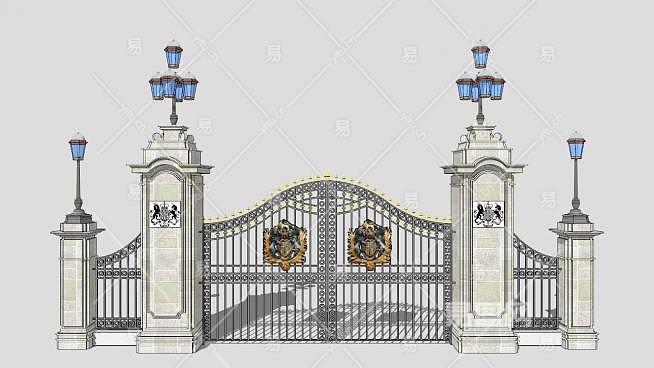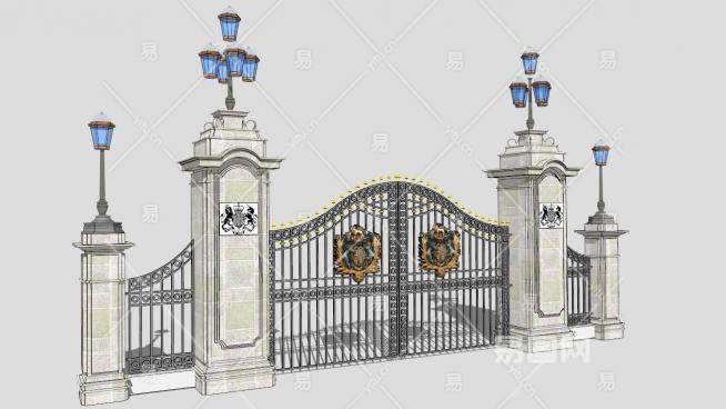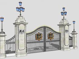 欧式现代庭院铁艺大门SU模型下载_sketchup草图大师SKP模型