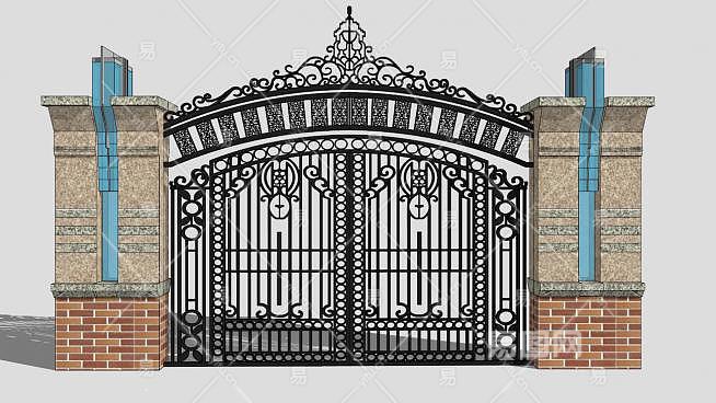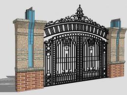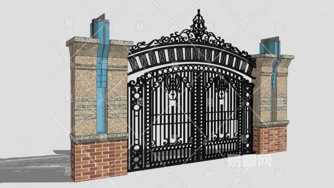 欧式别墅繁复铁艺大门SU模型下载_sketchup草图大师SKP模型