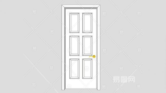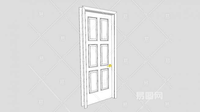 白色方格木质单开门SU模型下载_sketchup草图大师SKP模型