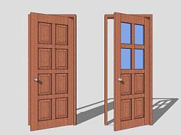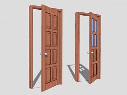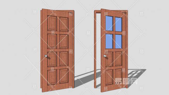 两个方格木门单开门SU模型下载_sketchup草图大师SKP模型