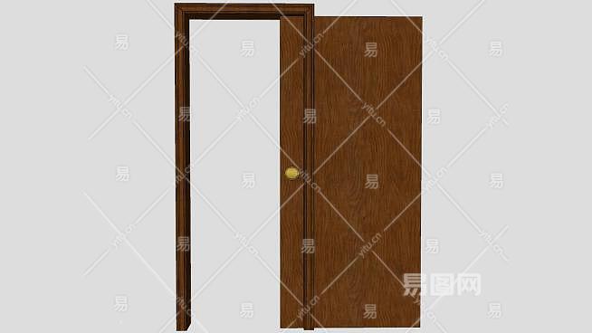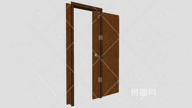 打开的木门SU模型下载_sketchup草图大师SKP模型