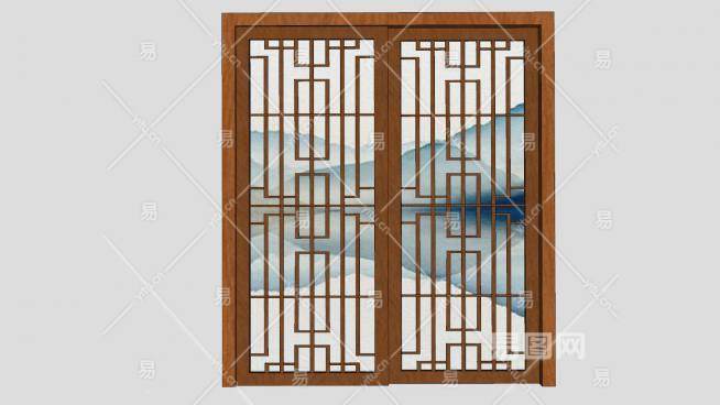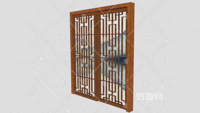 中式推拉门SU模型下载_sketchup草图大师SKP模型