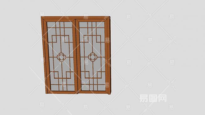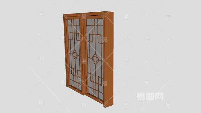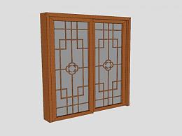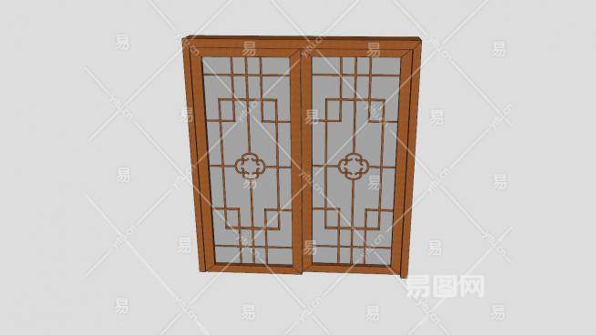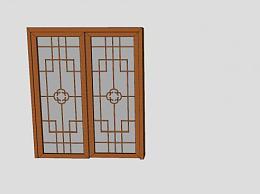 中式风格双开门推拉门SU模型下载_sketchup草图大师SKP模型