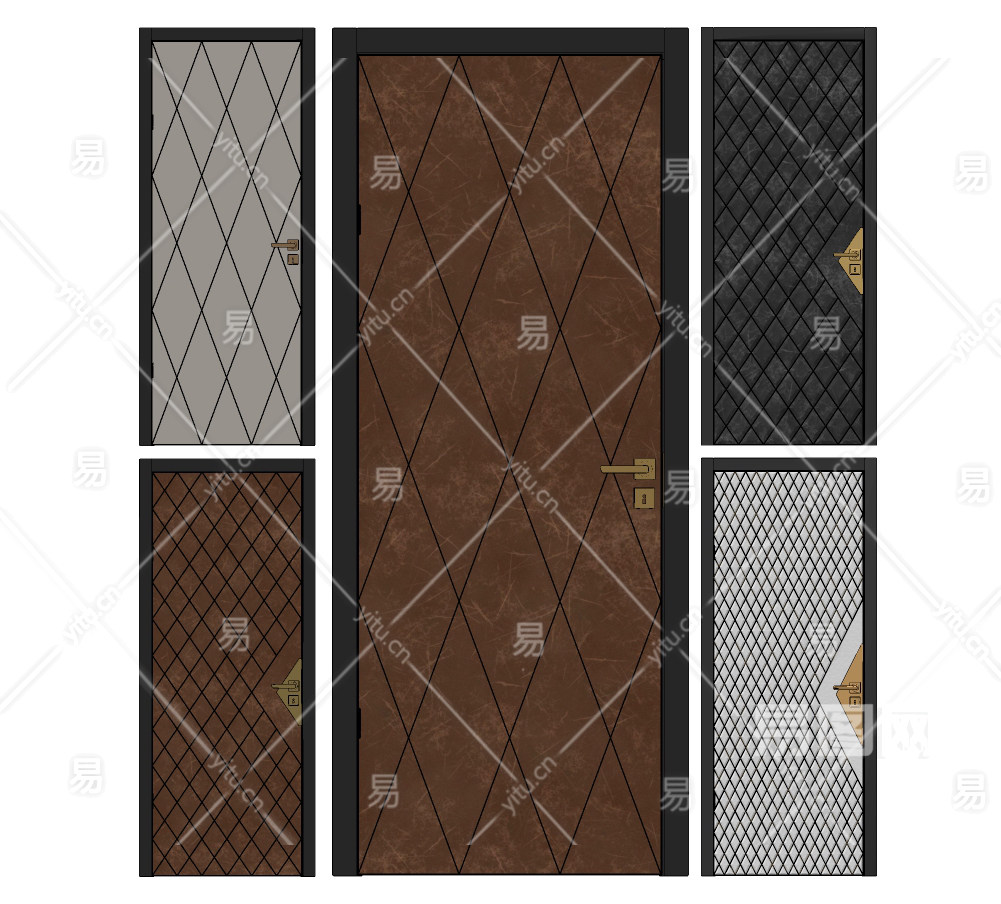 现代皮革平开门su草图模型下载