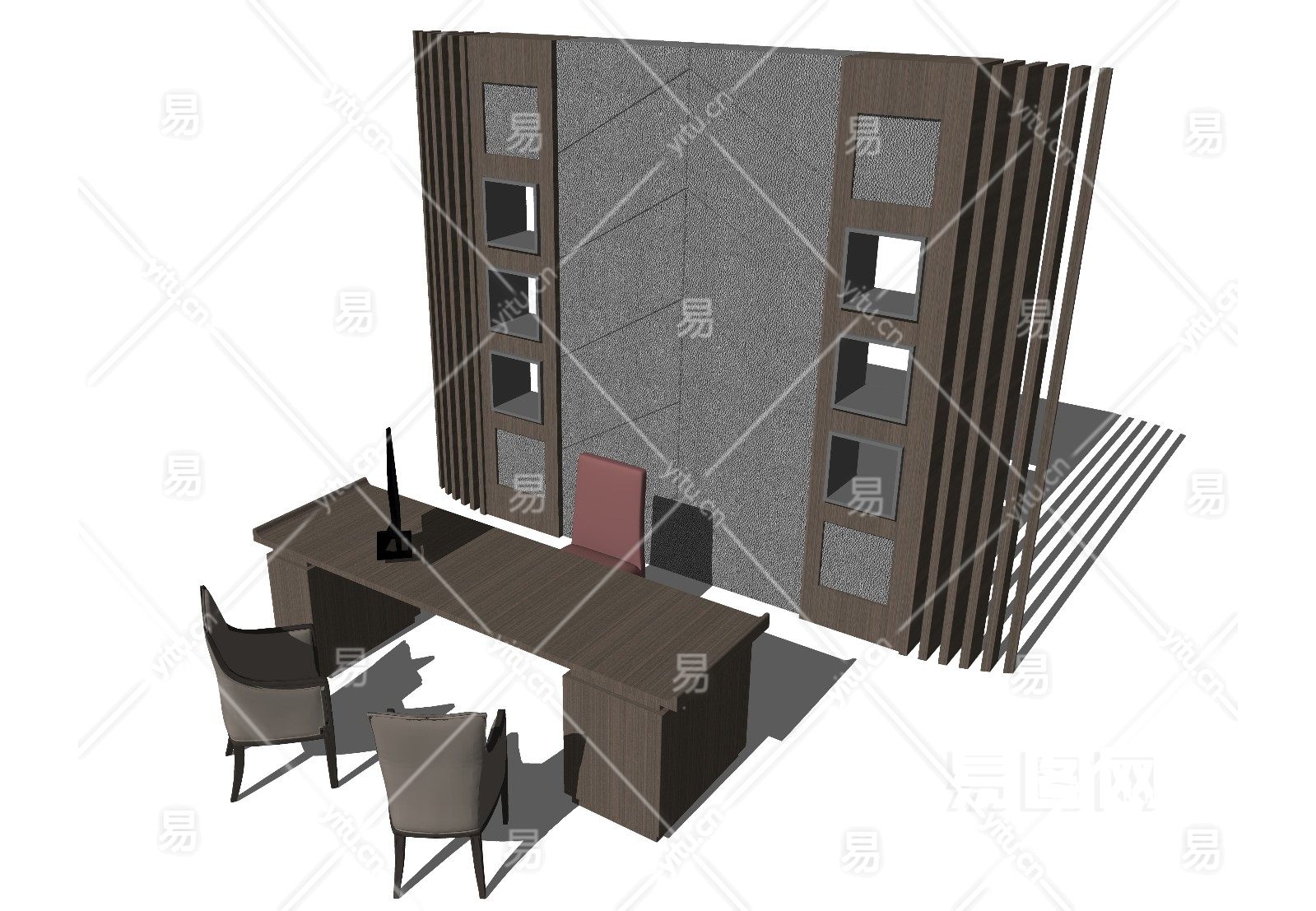 当前的位置:首页 > sketchup > sketchup模型 > 办公家具 > 班台桌 > 中式风格办公桌椅老板椅董事长办公桌总经理书柜班台桌椅